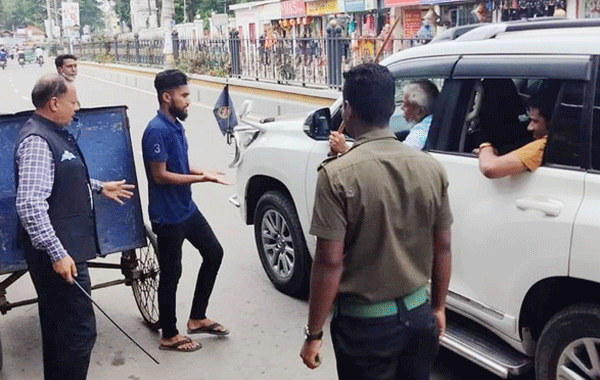 এ নিয়ে ফেসবুকে প্রতীকী প্রতিবাদ জানিয়ে পোস্ট করেন স্পাইস টেলিভিশনের সিলেট ব্যুরো প্রধান গোলজার আহমদ। তিনি ভাইরাল হওয়া সেই ছবি দিয়ে লেখেন, ‘এটা অনুচিত….. সমানুপাতিক হারে আইন প্রয়োগে ব্যর্থ আপনি। প্রতীকী হলেও মানতে নারাজ আমি।’