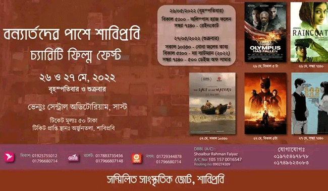 শাবি প্রতিনিধি : সিলেটে বন্যায় ক্ষতিগ্রস্ত পরিবারের পাশে দাঁড়াতে দুদিনব্যাপী চ্যারিটি ফিল্ম ফেস্টের আয়োজন করেছে শাহজালাল বিজ্ঞান ও প্রযুক্তি বিশ্ববিদ্যালয়ের শিক্ষার্থীরা। বিশ্ববিদ্যালয়ের সম্মিলিত সাংস্কৃতিক জোটের উদ্যোগে বৃহষ্পতি ও শুক্রবার কেন্দ্রীয় অডিটোরিয়ামে পাঁচটি জনপ্রিয় চলচ্চিত্র প্রদর্শন করা হবে।