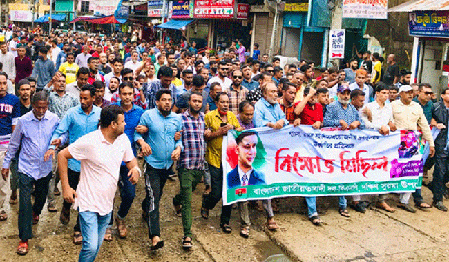 সোমবার বিকেলে দক্ষিণ সুরমার মারকাজ পয়েন্ট থেকে শুরু হওয়া বিক্ষোভ মিছিল শেষে ক্বীন ব্রীজের মোড়ে এসে অনুষ্ঠিত বিক্ষোভ মিছিল পরবর্তী সমাবেশে সভাপতিত্ব করেন উপজেলা বিএনপির উপজেলা বিএনপির সিনিয়র সহ সভাপতি আব্দুল লতিফ খাঁন। প্রতিবাদ সমাবেশ সঞ্চালনা করেন উপজেলা বিএনপির সাধারণ সম্পাদক কোহিনুর আহমদ।