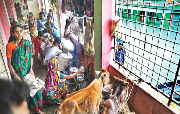 বুল্লা গ্রামের রানু আক্তার বলেন, ‘বাড়িঘরে পানি উঠেছে। তাই অসহায় হয়ে এসে আশ্রয়কেন্দ্রে উঠেছি। এখানে ত্রাণ পাইনি। খাদ্য সংকট তো আছেই। এমনকি বিশুদ্ধ খাবার পানিরও সংকট রয়েছে।’