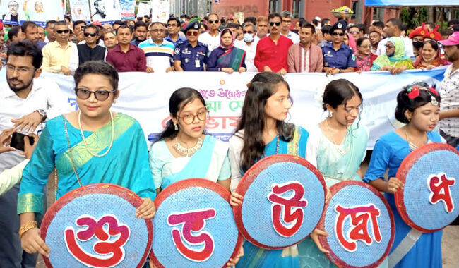 শনিবার দিনের শুরুতে জাতির পিতা বঙ্গবন্ধু শেখ মুজিবুর রহমানের প্রতি শ্রদ্ধা নিবেদন করেন জেলা প্রশাসন। পরে এক বর্ণাঢ্য শোভযাত্রা শহর প্রদক্ষিণ শেষে শিল্পকলা একাডেমীতে আলোচনা সভা অনুষ্ঠিত হয়।